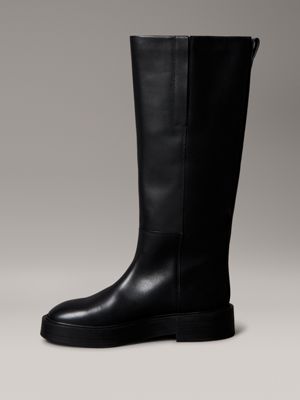 Leather Stacked Heel Knee Boots