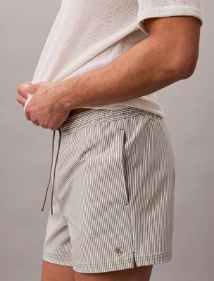 Short Drawstring Swim Shorts - Seersucker