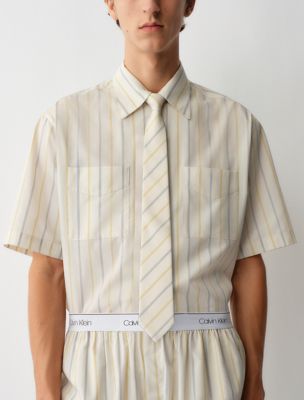 Minimal tie in yarn-dyed cotton stripe.